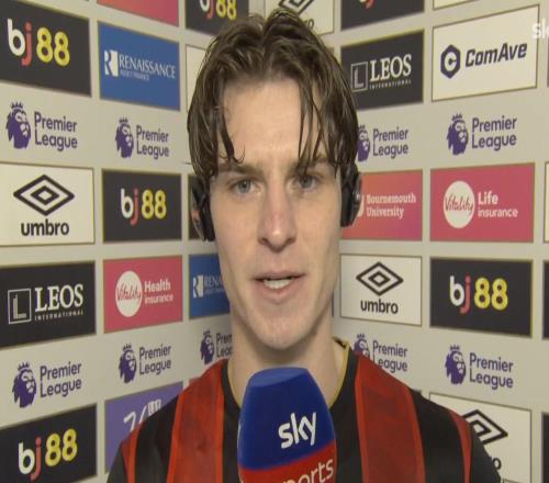 英超第23轮,伯恩茅斯主场3-2击败利物浦,赛后,伯恩茅斯中场亚历克斯-斯科特接受了天空体育的采访。祝贺你们赢得...